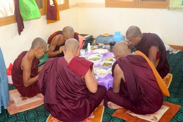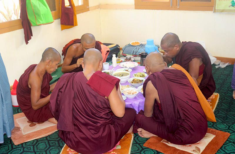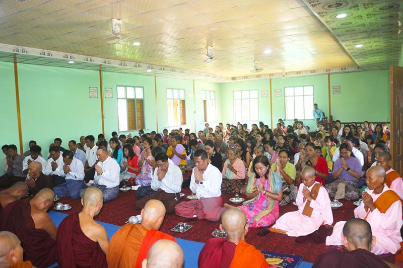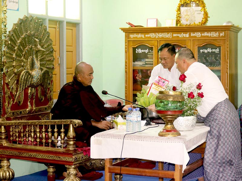 ထို့နောက် ကြွရောက်တော် မူလာကြသည့် သံဃာတော် အရှင်သူမြတ်တို့က ကထိန်သင်္ကန်းလှူဒါန်းခြင်းနှင့် ပတ်သက်သည့်တရားတော်များကို ချီးမြှင့်ဟောကြားပေးပြီးနောက်လှူဒါန်းမှုအစုစုအတွက် ရေစက်သွန်းချ အမျှပေးဝေကာ အခမ်းအနားရုတ်သိမ်းခဲ့ပြီး ဆရာတော်၊ သံဃာတော်၊ အရှင်သူမြတ်များကို နေ့ဆွမ်းများ ဆက်ကပ်လှူဒါန်းခဲ့ကြပါသည်။